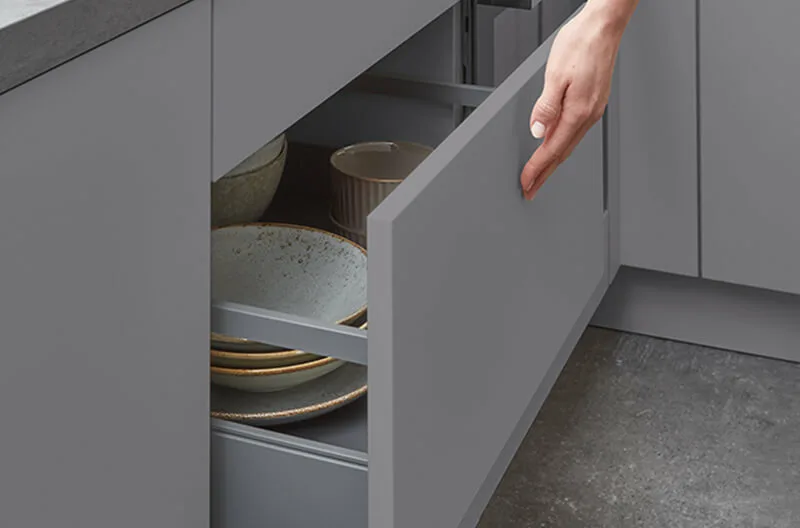 nBOX überzeugt mit praktischem Push-to-open-System: müheloses Öffnen, gedämpftes Schließen, maximaler Komfort.